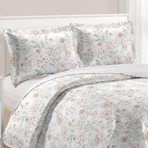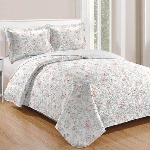 Kit Cobre Leito Colcha Daily Queen 3 Peças Dupla Face Estampado Floral - Floral 18 - 100% Poliéster