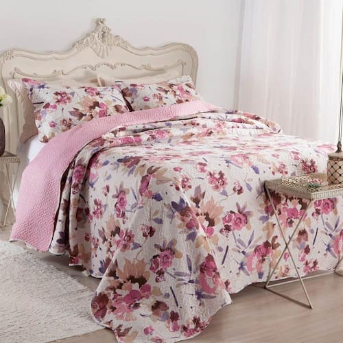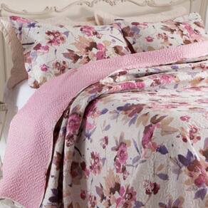 Kit Cobre Leito Colcha Daily Queen 3 Peças Dupla Face Estampado Floral - Floral 4 - 100% Poliéster