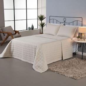 Kit Cobre Leito Colcha Dual King 3 Peças Matelado Dupla Face Liso Areia 100% Poliéster - Bege