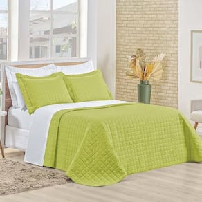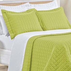 Kit Cobre Leito Colcha Eden Casal 3 Peças Percal 150 Fios 100% Algodão - Verde Pistache