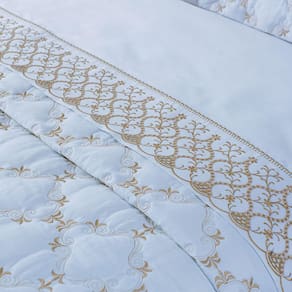 Kit Cobre Leito Colcha Garland Queen 100% Algodão 400 Fios Acetinado Bordado 5 Peças - Branco - Única