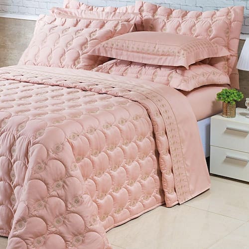 Este cobre leito é a escolha perfeita para quem busca um toque de elegância e sofisticação em seu ambiente. Com um tecido acetinado de 400 fios, você sentirá a suavidade e a delicadeza do algodão de alta qualidade a cada toque.