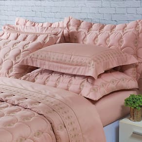 Apresentamos o nosso requintado Cobre Leito Garland com Bordado Especial em Tecido 400 Fios Acetinado 100% Algodão, uma peça de alta qualidade que elevará instantaneamente o nível da sua decoração de interiores.