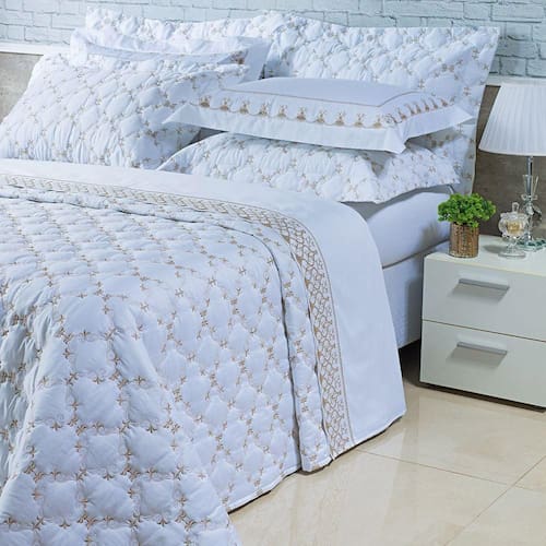 Kit Cobre Leito Colcha Garland Super King 100% Algodão 400 Fios Acetinado Bordado 5 Peças - Branco