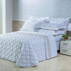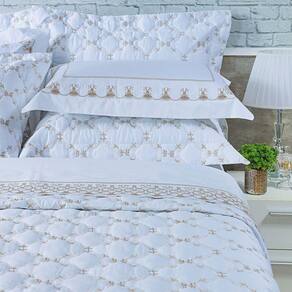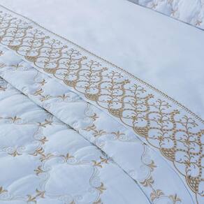 Kit Cobre Leito Colcha Garland Super King 100% Algodão 400 Fios Acetinado Bordado 5 Peças - Branco - Única