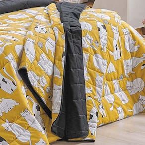A estampa delicada de gatinhos adiciona um toque lúdico e moderno à decoração, tornando o ambiente mais acolhedor e estiloso. Além disso, o acabamento matelado confere um visual sofisticado, enquanto as costuras reforçadas garantem um caimento impecável, deixando sua cama sempre bem arrumada e convidativa.