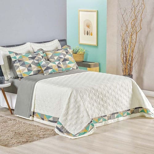 Os porta-travesseiros geométricos complementam o visual moderno do kit, criando um contraste sofisticado e atual. O Kit Cobre Leito Divine é a escolha ideal para quem deseja transformar o quarto em um refúgio elegante e aconchegante, sem abrir mão do estilo.