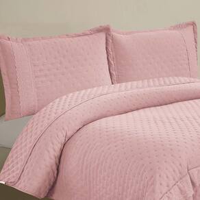 Kit Cobre Leito Colcha Jovial Queen Dupla Face 3 Peças - Rosê - 100% Poliéster Explore o luxo e a sofisticação com o Cobre Leito Jovial, uma peça excepcional que eleva o conforto do seu quarto a patamares superiores. O tecido de micropercal, com sua trama fina e suave, proporciona uma experiência de toque irresistível, envolvendo você em uma sensação de maciez inigualável.