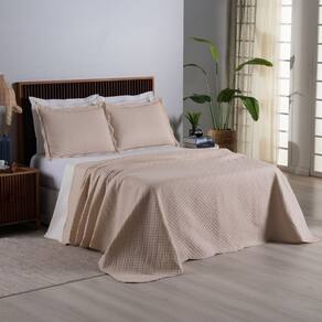 Kit Cobre Leito Colcha King Dupla Face Madrid 3 Peças - Bege