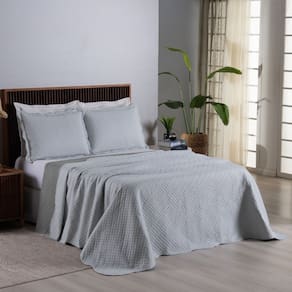 Não precisa passar: a textura matelada mantém o bom aspecto do cobre-leito mesmo após a lavagem.
