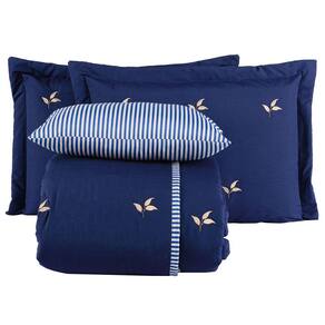 O Kit Melini é confeccionado tecido de alta qualidade de 200 fios que é macio, respirável e durável. O tecido também é bordado com detalhes delicados que adicionam um toque de elegância ao seu quarto. A almofada listrada combina perfeitamente com o cobre-leito e completa o visual. Ideal para quem procura um toque de luxo e sofisticação ao seu quarto.
