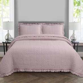 Kit Cobre Leito Colcha Maison Casal Padrão com Babado Percal 300 Fios 3 Peças - Roxo Malva