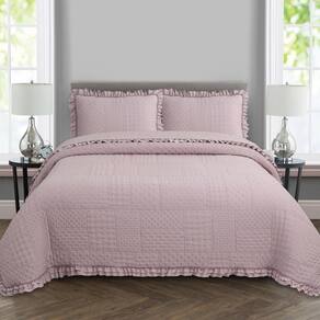 Seu design acolchoado matelado em padrão geométrico transmite sofisticação, enquanto os babados delicados nas bordas adicionam um toque clássico e romântico ao visual da sua cama. Além de decorar, o cobre leito é resistente, fácil de lavar e de secagem rápida, garantindo praticidade para o dia a dia.