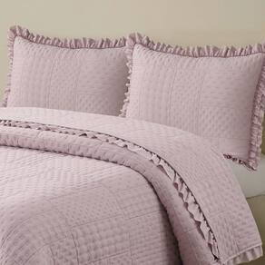 Kit Cobre Leito Colcha Maison Casal Padrão com Babado Percal 300 Fios 3 Peças - Roxo Malva