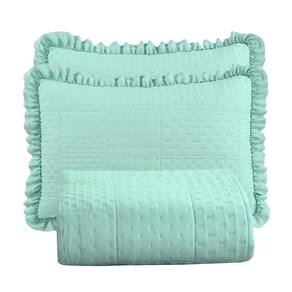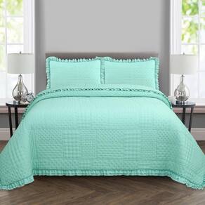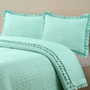 Kit Cobre Leito Colcha Maison Casal Padrão com Babado Percal 300 Fios 3 Peças - Verde Menta