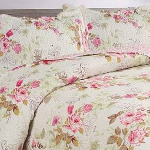 Kit Cobre Leito Colcha Mix King Estampado Dupla Face Floral 3 Peças - Mariela - Única