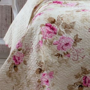 Kit Cobre Leito Colcha Mix Queen Estampado Dupla Face Floral 3 Peças - Diana