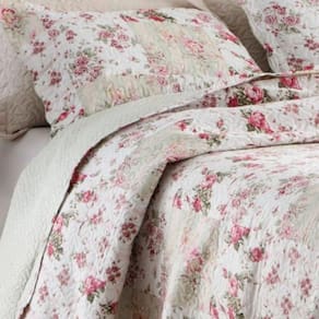Kit Cobre Leito Colcha Mix Queen Estampado Dupla Face Floral 3 Peças - Isabela