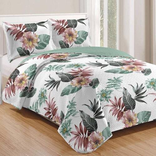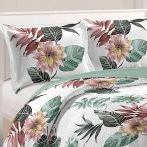 Kit Cobre Leito Colcha Mix Queen Estampado Dupla Face Floral 3 Peças - Larissa