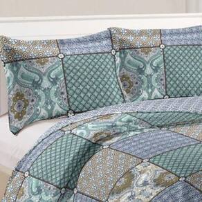 Kit Cobre Leito Colcha Mix Queen Estampado Dupla Face Floral 3 Peças - Lorena
