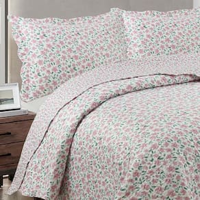 Kit Cobre Leito Colcha Mix Queen Estampado Dupla Face Floral 3 Peças - Sabrina - Palha - Única