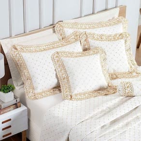Os delicados detalhes bordados adicionam um toque de requinte e charme ao conjunto, elevando sua estética e tornando-o uma peça de destaque na decoração do quarto.