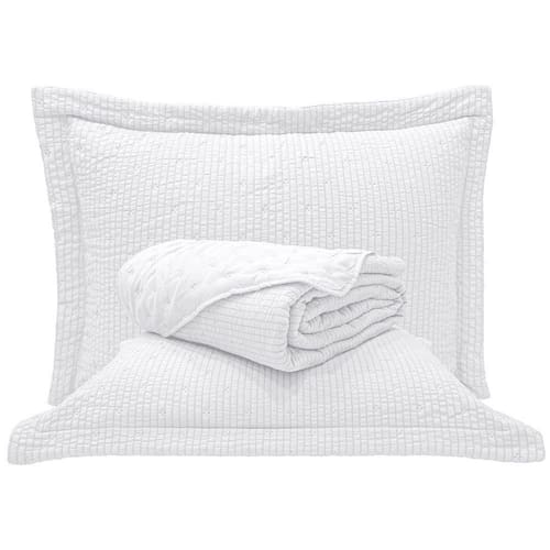 Kit Cobre Leito Colcha Pequim Queen Dupla Face 3 Peças - Branco - 100% Poliéster