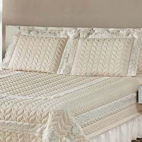Kit Cobre Leito Colcha Romance King 5 Peças Micropercal 200 Fios Matelado Costurado Renda - Palha - Única