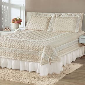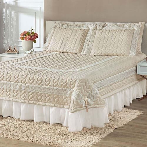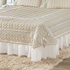 Kit Cobre Leito Colcha Romance Queen 5 Peças Micropercal 200 Fios Matelado Costurado Renda - Palha - Única