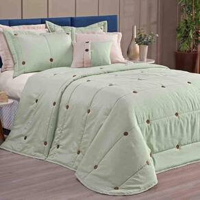 01 Cobre Leito Bordado 2,80 x 2,60m;02 Porta travesseiros Bordados 75cm x 55cm;02 Porta travesseiros 75cm x 55cm;01 Capa de Almofada 40cm x 40cm;01 Refil de Almofada 40cm x 40cm. Composição:Tecido Superior: 200 Fios - 100% Poliéster.