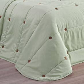 Cada peça deste conjunto é meticulosamente confeccionada para trazer sofisticação ao ambiente. O tecido bordado com detalhes intrincados adiciona um toque de textura e beleza, elevando o visual da cama e do quarto como um todo. Os botões decorativos não apenas acrescentam charme, mas também um toque clássico e atemporal.