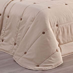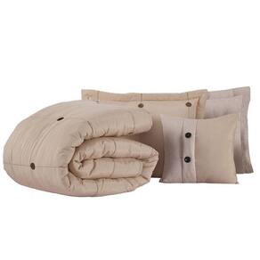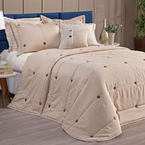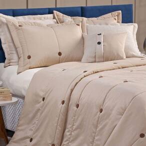 Kit Cobre Leito Colcha Splendore Queen 07 Peças Bordado Botão 200 Fios - Avelã