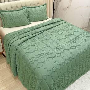 Kit Cobre Leito Colcha Stylo Queen Dupla Face 3 Peças - Verde Explore o luxo e a sofisticação com o Cobre Leito Stylo, uma peça excepcional que eleva o conforto do seu quarto a patamares superiores. O tecido de micropercal, com sua trama fina e suave, proporciona uma experiência de toque irresistível, envolvendo você em uma sensação de maciez inigualável.
