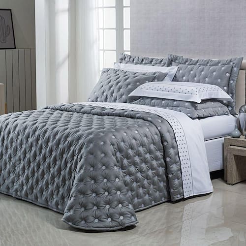 Kit Cobre Leito Colcha Super King 100% Algodão 400 Fios Acetinado Bordado 5 Peças Cinza Escuro - Única