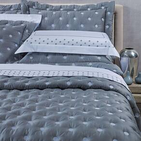 Kit Cobre Leito Colcha Garland Super King 100% Algodão 400 Fios Acetinado Bordado 5 Peças - Cinza Escuro