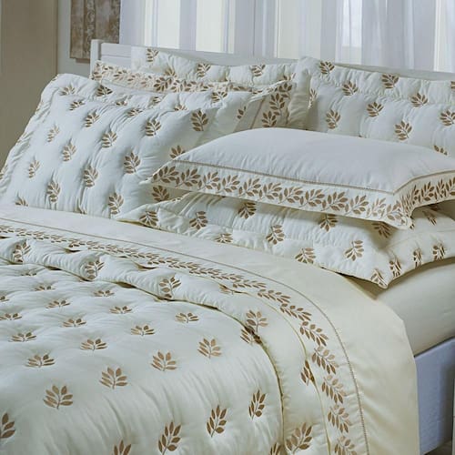 Kit Cobre Leito Colcha Garland Super King 100% Algodão 400 Fios Acetinado Bordado 5 Peças - Palha E Fendi