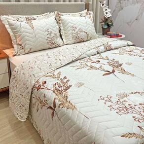 Kit Cobre Leito Colcha Topázio King Dupla Face 3 Peças - Bege - 100% Poliéster