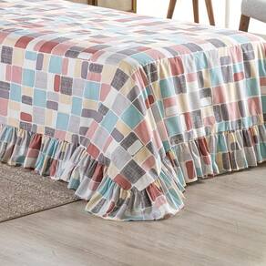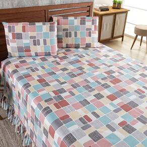 Kit Cobre Leito Colcha Turin Casal Estampada c/ Babado 400 Fios 3 Peças Pastilhas Coloridas Rosê - Única