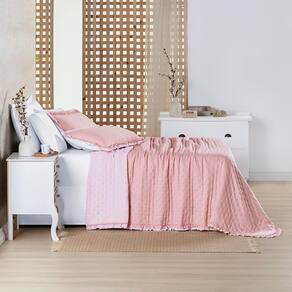Kit Cobre Leito Colcha Vitta King Matelado c/ Babadinhos 200 Fios 3 Peças Rosa - Única