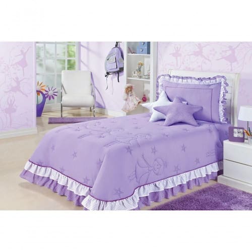 Kit Cobre Leito Com Almofadas Bailarina Solteiro 4 Peças - Lilás - Única