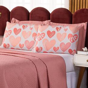 O Kit Cobre Leito Corações é a escolha perfeita para dar um toque de romance e elegância ao seu quarto. Este conjunto é dupla face, oferecendo versatilidade com um lado em rosê suave e outro em branco puro, permitindo que você escolha o visual que mais combina com o seu estado de espírito. O kit inclui duas fronhas estampadas e duas mateladas que complementam o design, adicionando um toque de delicadeza e charme ao conjunto. Especificamente projetado para camas de tamanho queen, este conjunto é a maneira ideal de transformar o seu quarto em um ambiente aconchegante e romântico. Perfeito para casais que desejam um espaço que reflita seu amor e paixão, com toques de doçura e ternura através dos corações no design. Confira!