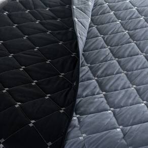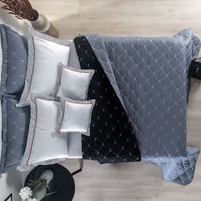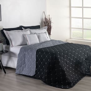 QUANTIDADE DE PEÇAS E MEDIDAS APROXIMADAS (COMPRIMENTO X LARGURA): 01 Cobre Leito Dupla Face Bordado Casal Padrão: 2,40m x 2,20m; 02 Porta Travesseiros Dupla Face com Zíper Invisível (3 Lados): 70cm x 50cm (Medida Útil); 02 Fronhas com Estampa Localizada e Aba (3 Lados): 70cm x 50cm; 02 Capas de Almofada com Estampa Localizada e Aba (4 Lados): 38cm x 38cm.