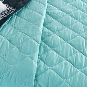 QUANTIDADE DE PEÇAS E MEDIDAS APROXIMADAS (COMPRIMENTO X LARGURA): 01 Cobre Leito Dupla Face Bordado Solteiro: 2,40m x 1,80m; 01 Porta Travesseiro Dupla Face com Zíper Invisível (3 Lados): 70cm x 50cm (Medida Útil); 01 Fronha com Estampa Localizada e Aba (3 Lados): 70cm x 50cm; 01 Capa de Almofada com Estampa Localizada e Aba (4 Lados): 38cm x 38cm.