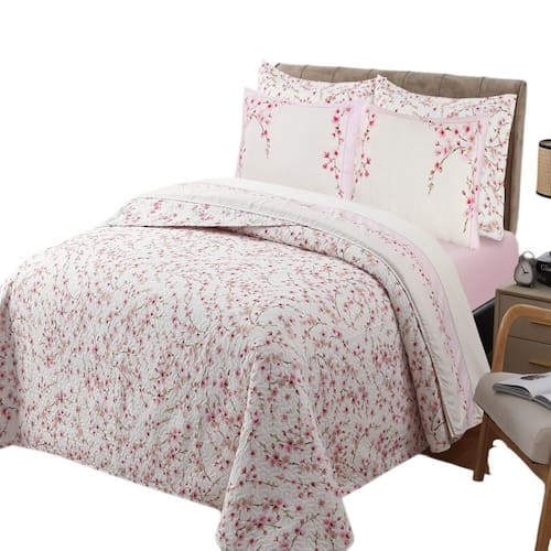 Kit contendo Cobre leito e Jogo de Lençol para cama Queen com 07 peças confeccionado em tecido estampado em Percal 300 Fios com alto padrão de qualidade, proporcionando conforto, beleza e requinte para seu quarto.