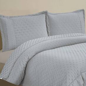 Kit Cobre Leito King + Jogo De Lençol Micropercal 300 Fios Com Bordado Inglês Santorini 7 Peças - Cinza
