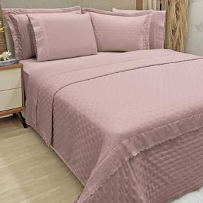 Kit Cobre Leito King + Jogo De Lençol Micropercal 300 Fios Com Bordado Inglês Santorini 7 Peças - Malva