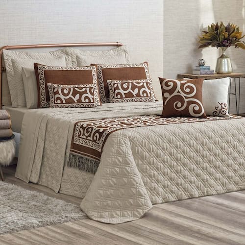 Kit Cobre Leito King Turin com Almofadas e Peseira 180 Fios 10 Peças - Caqui - Cáqui