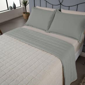 Design matelassê que garante resistência e face: use o lado de percal para um toque leve ou o lado de Sherpa para maior conforto nos dias travesseiros com abas , adicionando um toque de sofisticação.