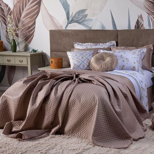 Confeccionado em tecido Microfibra 100% Políester, a nova Coleção Maya vem trazendo um toque macio, com portas estampados em acabamento debrum, o cobre leito com enchimento em manta dupla face, permitindo o uso dos dois lados (Caqui e Branco) com lindos detalhes nos porta-travesseiros matelados e na almofadinha estampada com viés, acompanhando também uma linda almofada redonda em veludo, aquele toque perfeito para trazer conforto e beleza na sua decoração. Tudo para combinar com a sua cama! Produzido num rigoroso controle de qualidade, dando um toque de requinte para o ambiente. Confira!