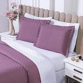 Acabamento Premium: O kit inclui dois portas travesseiros bordados com acabamento em debrum, um detalhe que proporciona um caimento perfeito e um visual de cama completa.